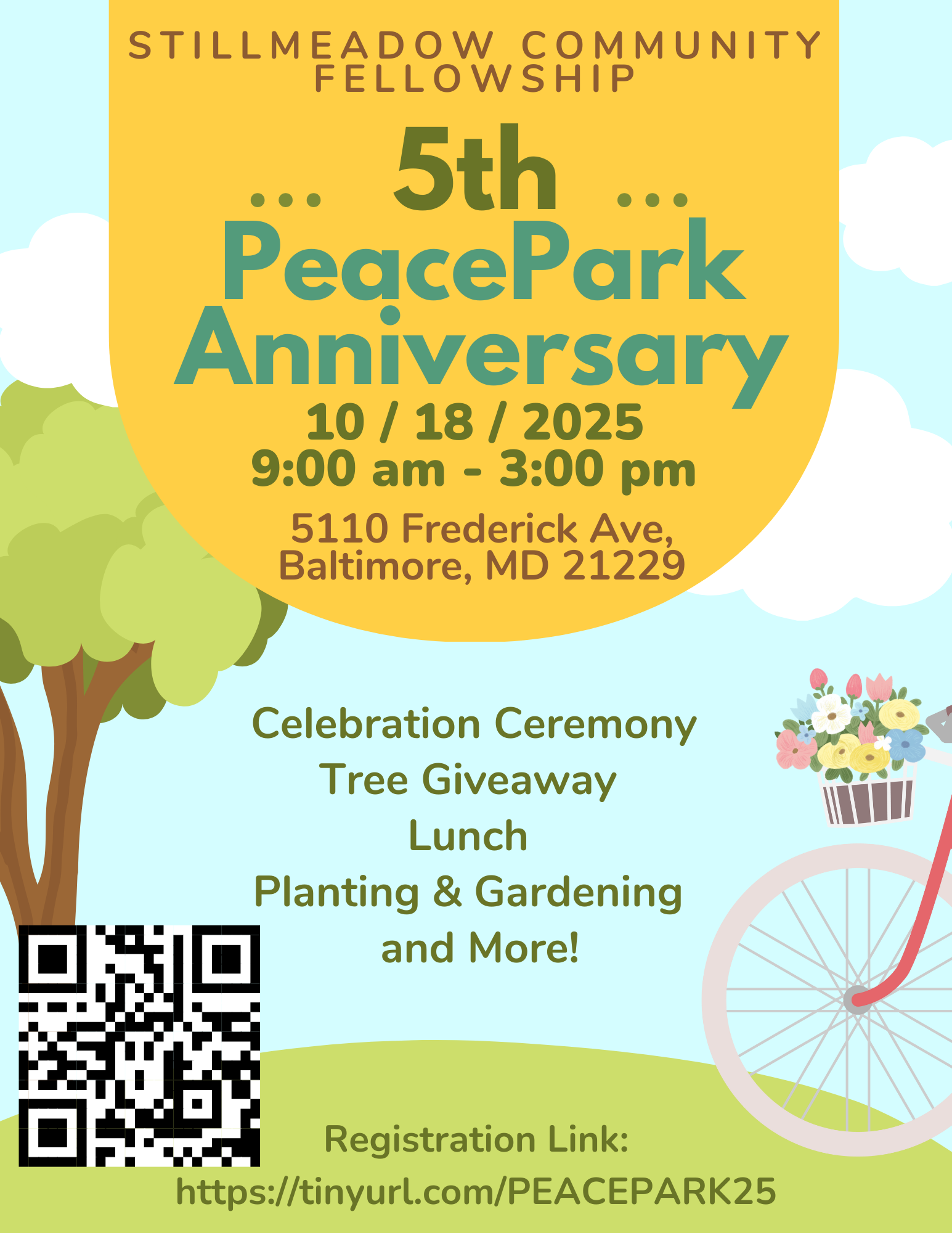 Time to celebrate the 5th Anniversary of Stillmeadow Community Fellowship's PeacePark! We look forward to celebrating with all the family, friends, neighbors, and dedicated partners who have joined the journey!